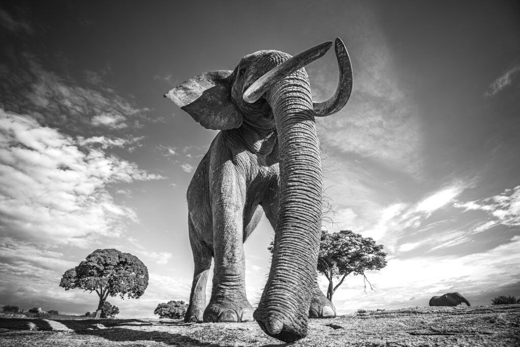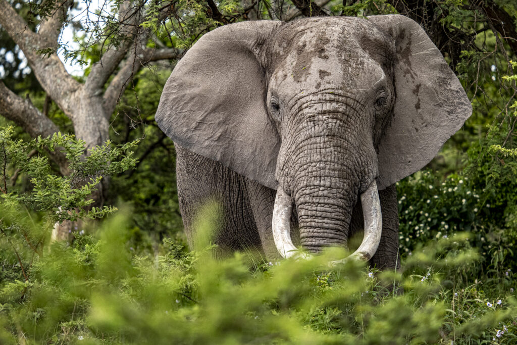 Un rhinocéros blanc émerge d'un bain de boue matinal